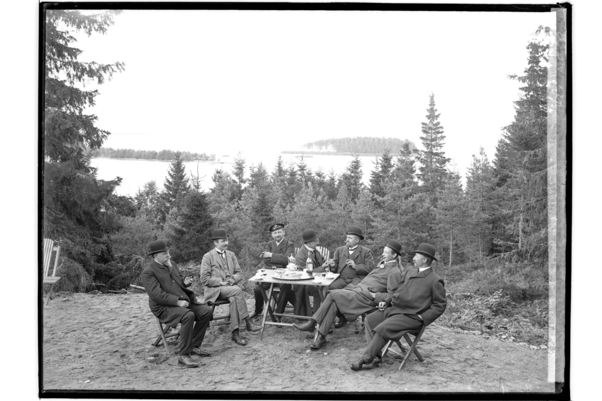 Hjälmarbadens restaurang, 7 herrar vid kaffebordet.