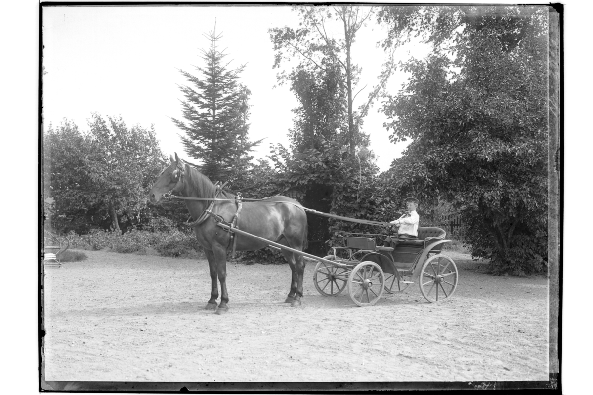 Hästdroska, en person.