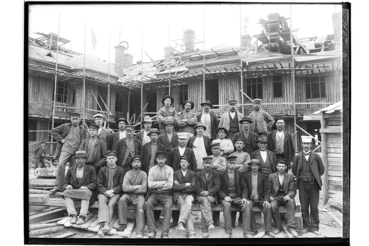 Edstams bygge på öster, 32 byggnadsarbetare.