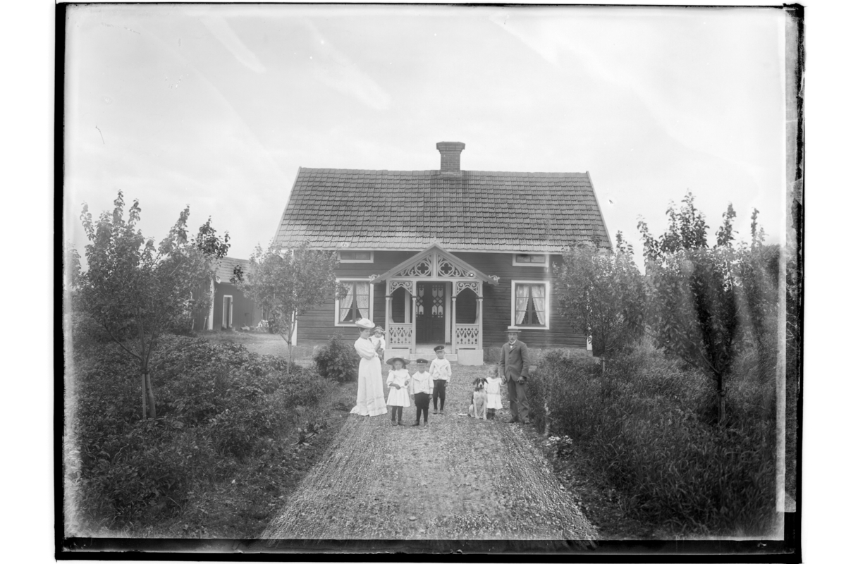 Parstuga, 6 personer och en hund.