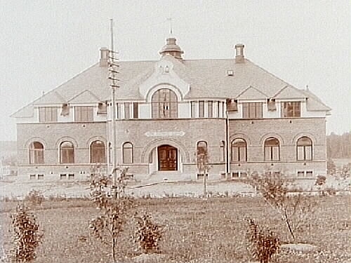 Nora, sjukhuset, exteriör. Invigdes år 1905, revs år 1962.
