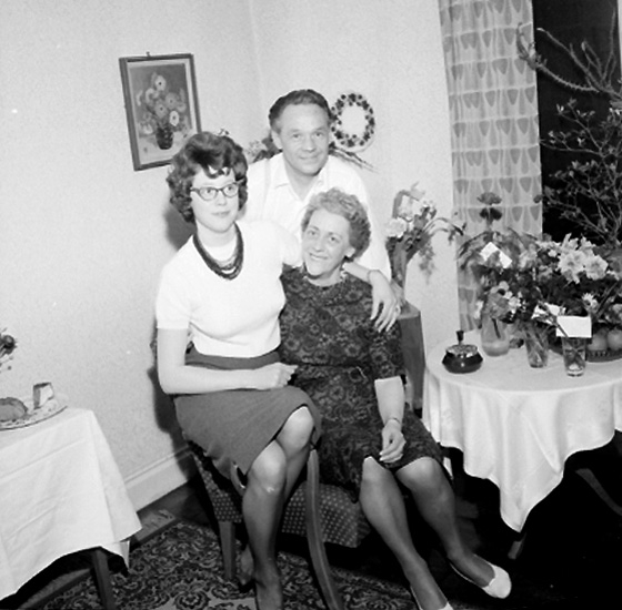 Rumsinteriör, familjegrupp tre personer.