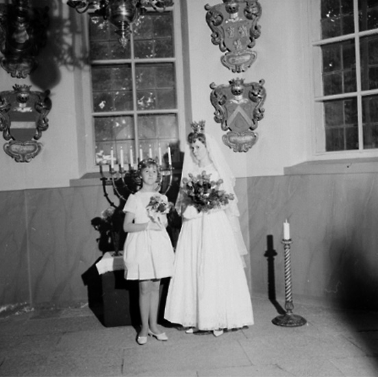 Interiör av Stora Mellösa kyrka, brud och en flicka.