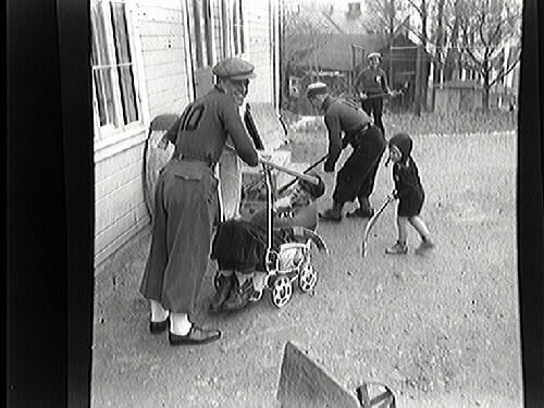Här skjuter 'Afa' Törnkvist 'Sme-Kalle' Karlsson i barnvagn.