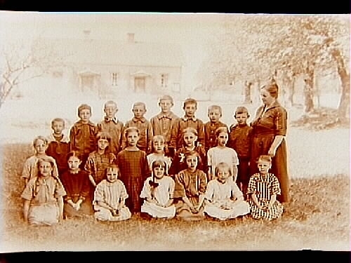 Rinkaby skola, 20 skolbarn och lärarinnan Beda Kruse.