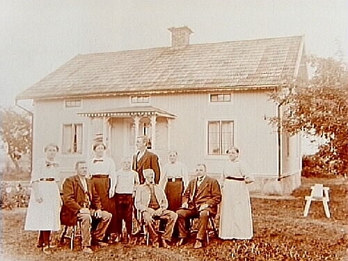 En och en halvvånings bostadshus med förstubro i snickarglädje.