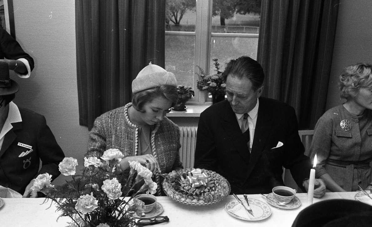 Prinsessan Christina dricker kaffe i Wadköping tillsammans med landshövding Valter Åman under Ungdomens Dag.