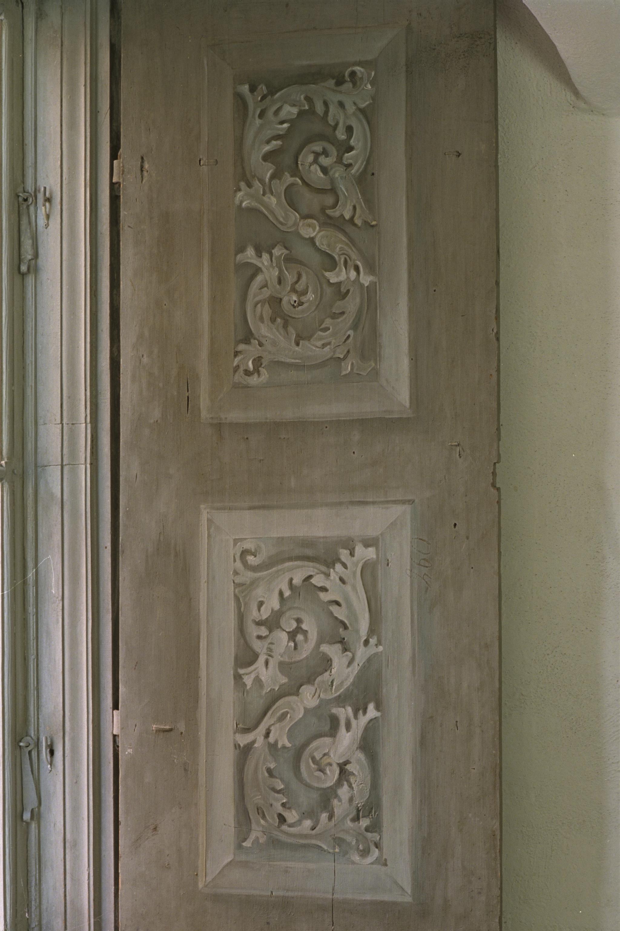 Vasatornet, första våningen, grisaillemålad fönsterlucka.