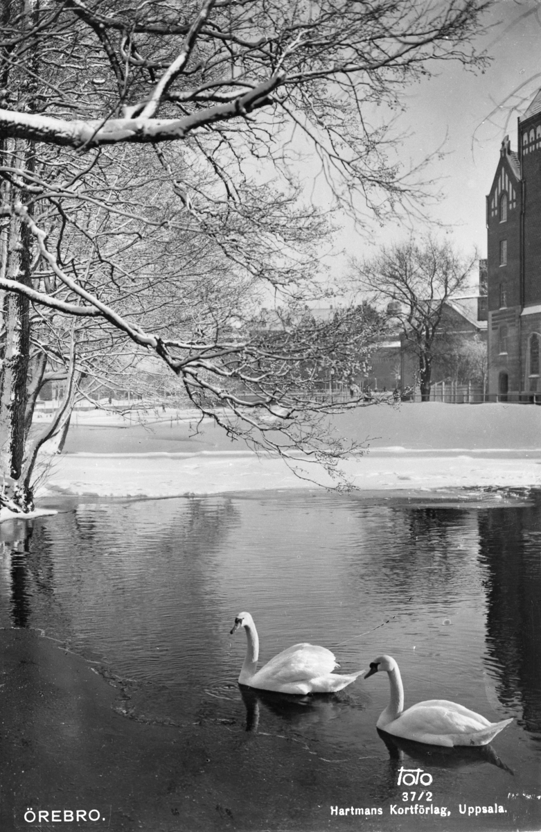 Örebro motiv med två svanar.