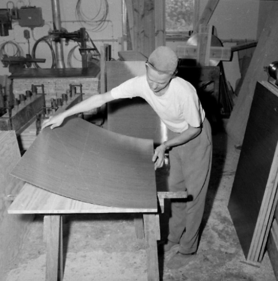 Titel: Carlsfors (Karlsfors) snickerifabrik, interiör, en man. Gustafsson & Görtz (beställare ?).
