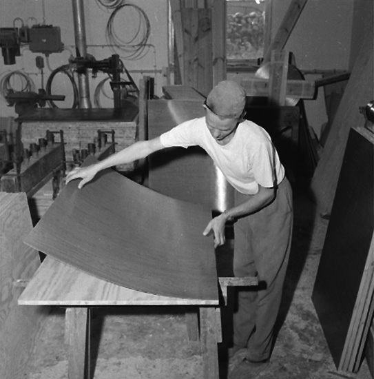 Titel: Carlsfors (Karlsfors) snickerifabrik, interiör, en man. Gustafsson & Görtz (beställare ?).