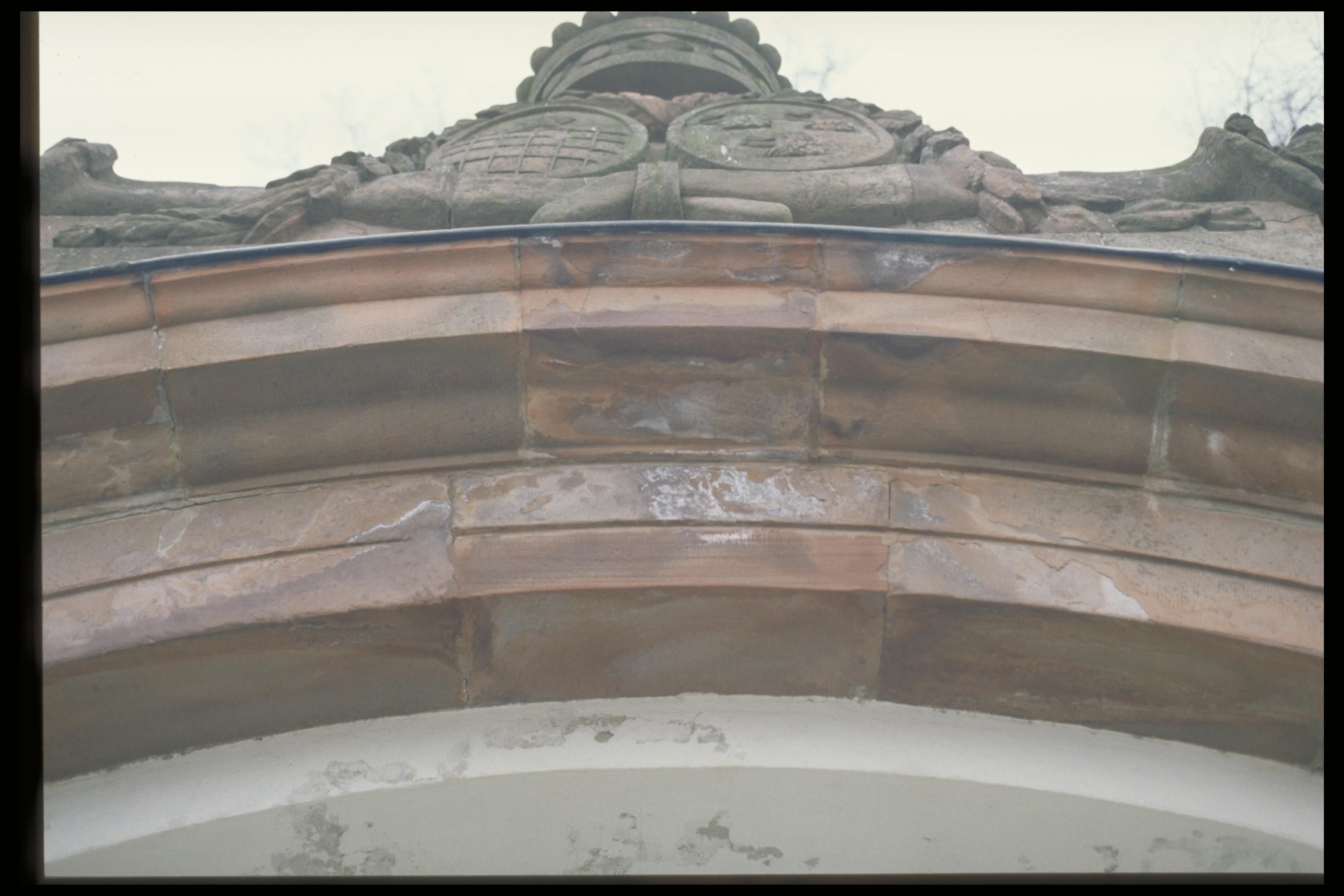 Borggårdsportal från söder, vid Övedskloster. Arkivolten underifrån