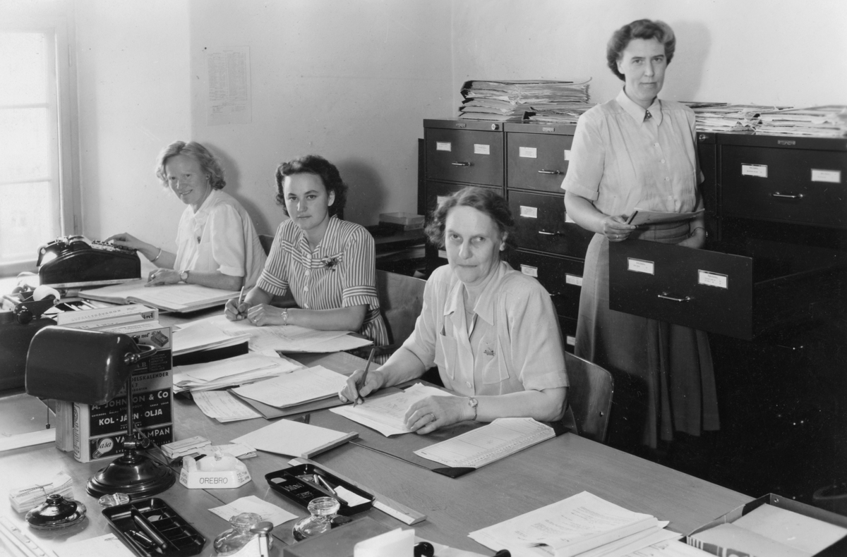 Örebro slott, kontorsinteriör, fyra kvinnor.