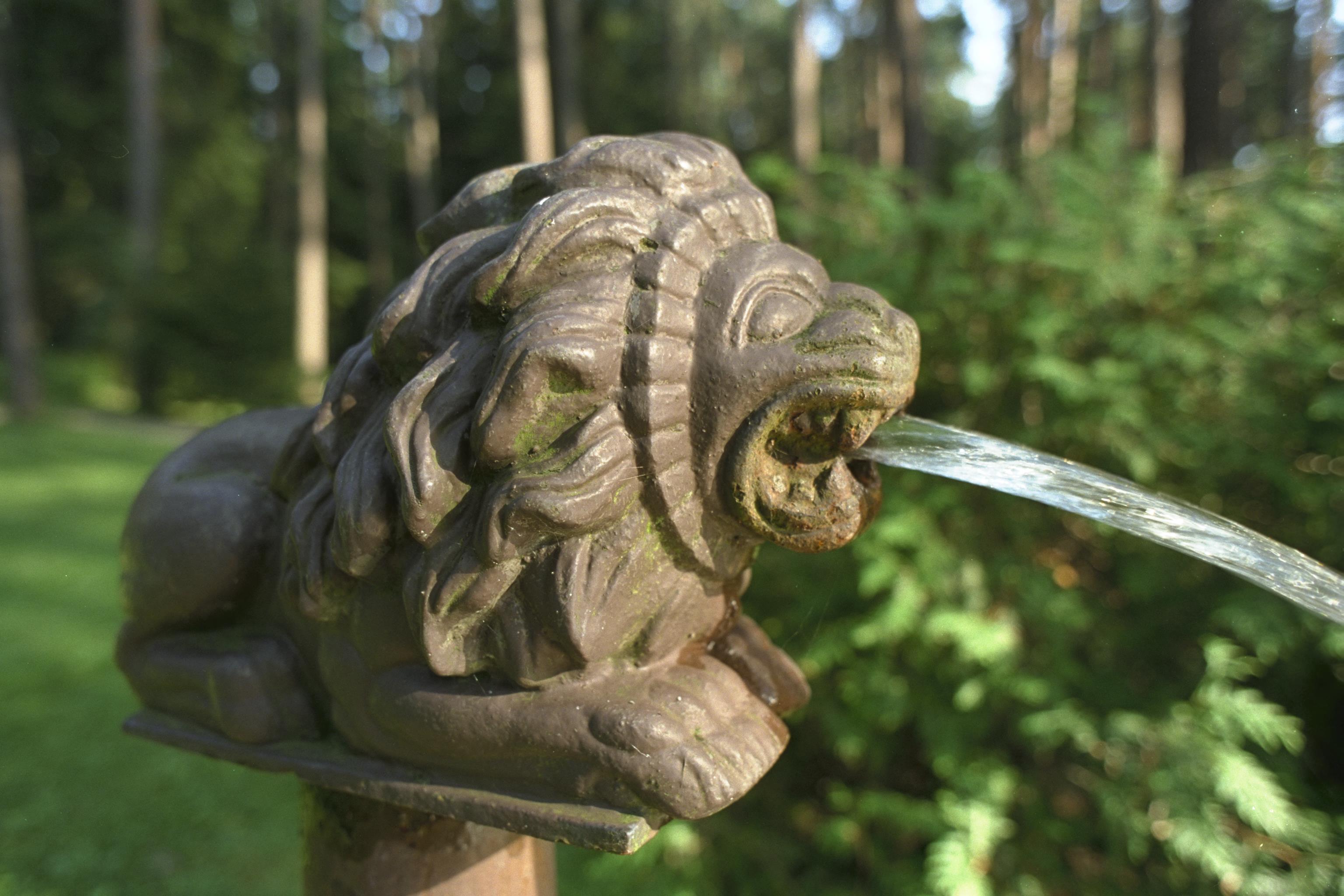 Detalj av brunnskar, vattenkastare i form av ett lejon.
