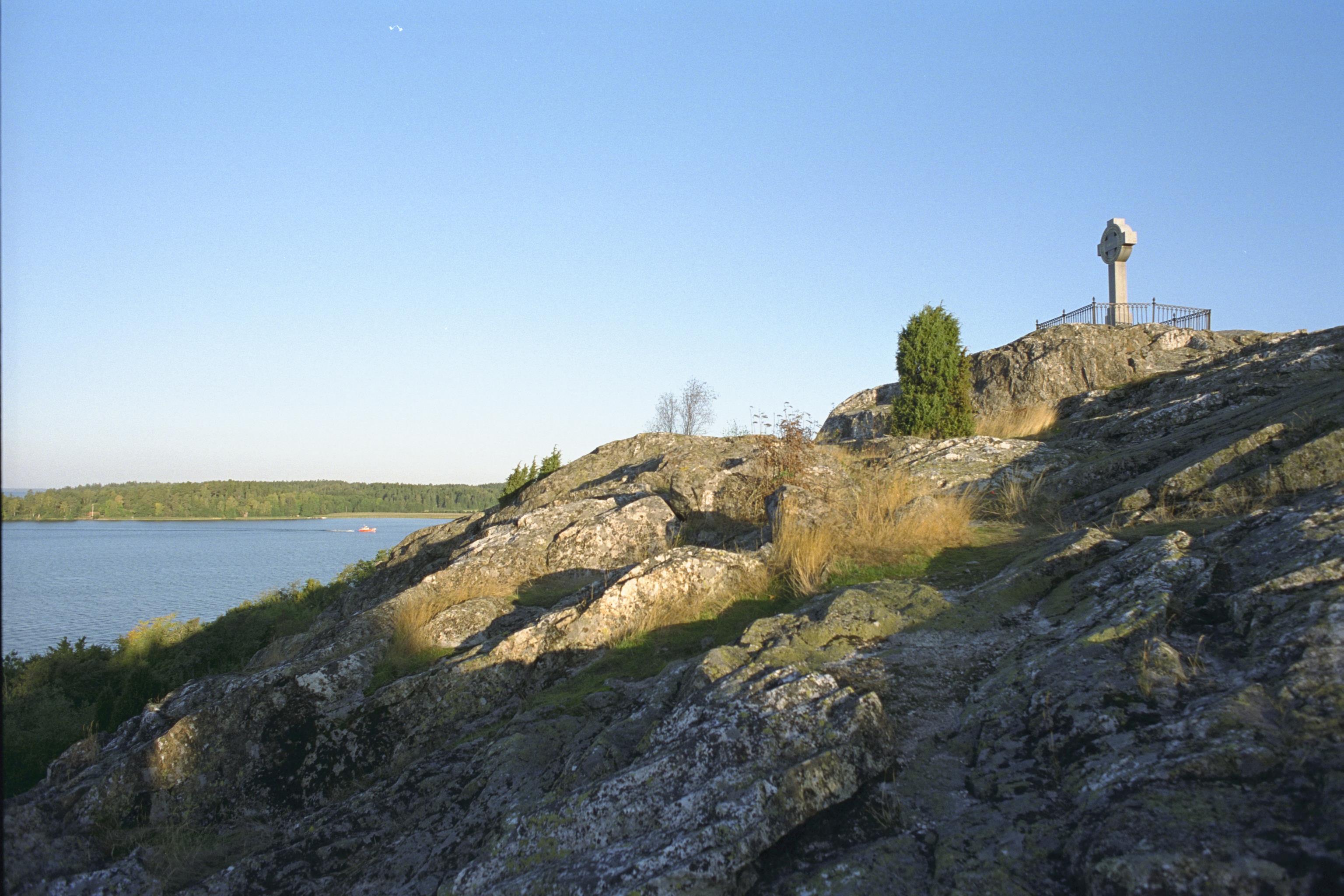 Borgberget. Ansgarskorset med Adelsö i bakgrunden