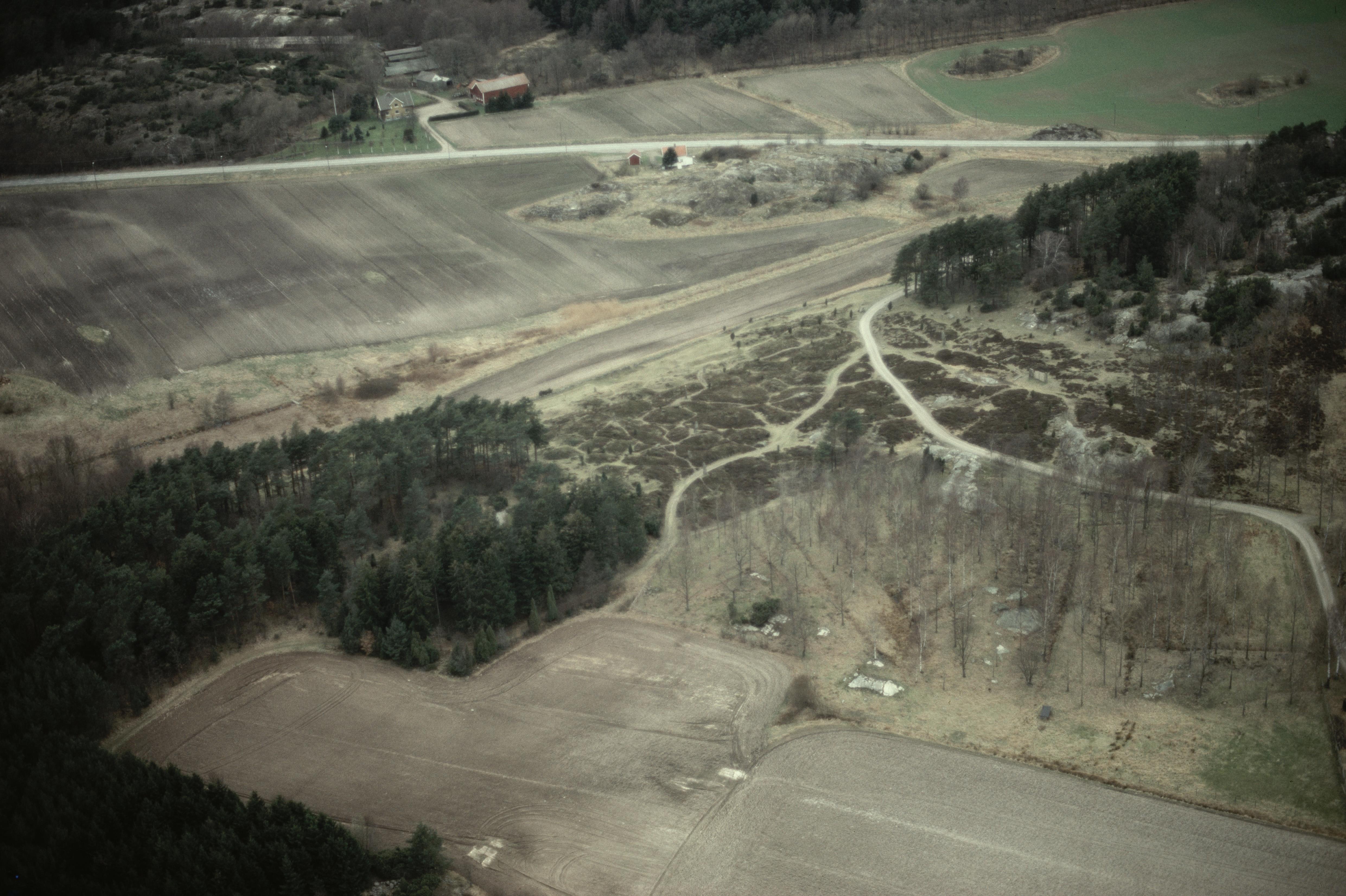 Greby gravfält RAÄnr Tanum 734:1. Stort och välbevarat gravfält med nära 200 kända anläggningar. Bilden är tagen mot (väderstreck): V