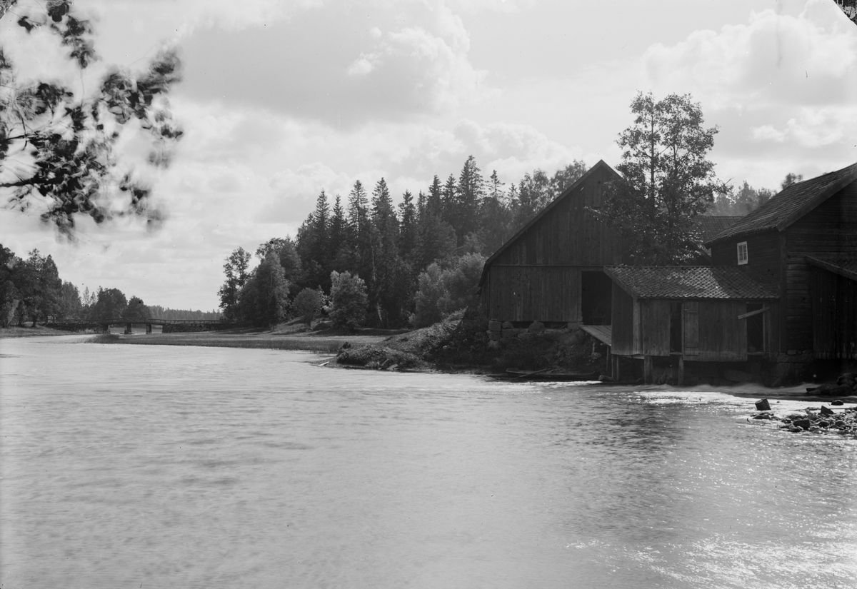 Motiv från Borggårds bruk omkring förra sekelskiftet. Anlagt redan på 1500-talet vid Hällestadsåns utlopp i sjön Lilla Tron.