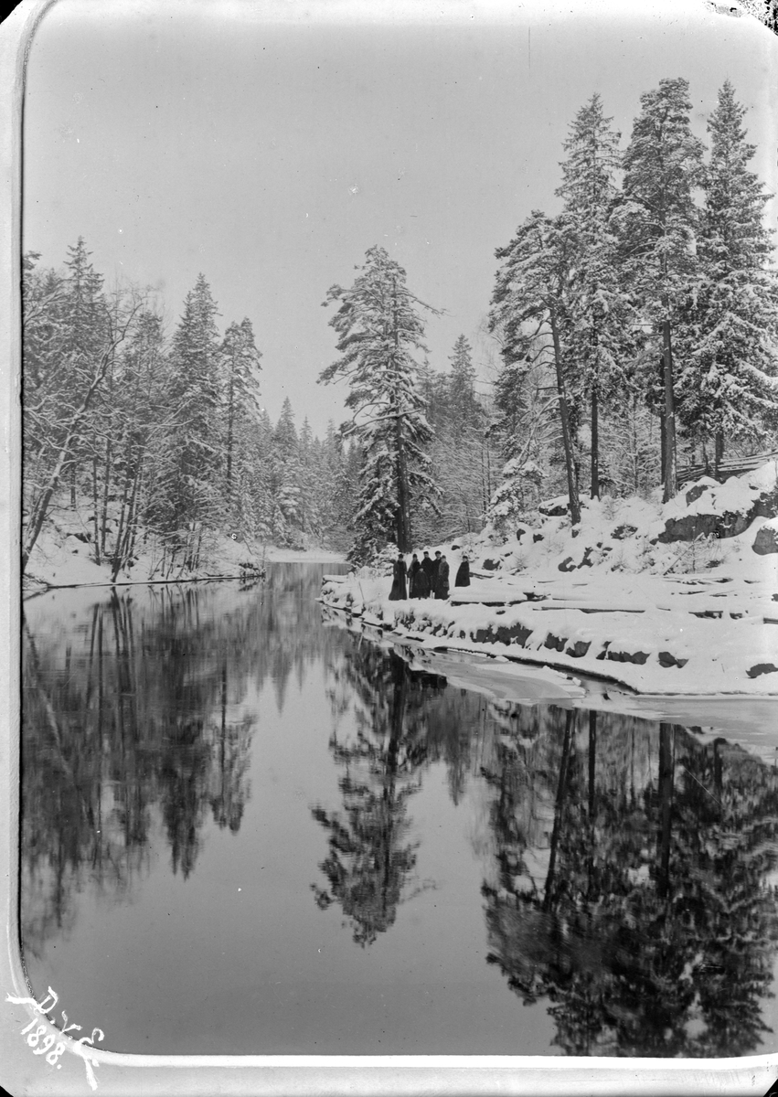 Enligt påskrift "Parti af strömmen vid Borggårds bruk, Hällestad". Menas rimligtvis Hällestadsån.