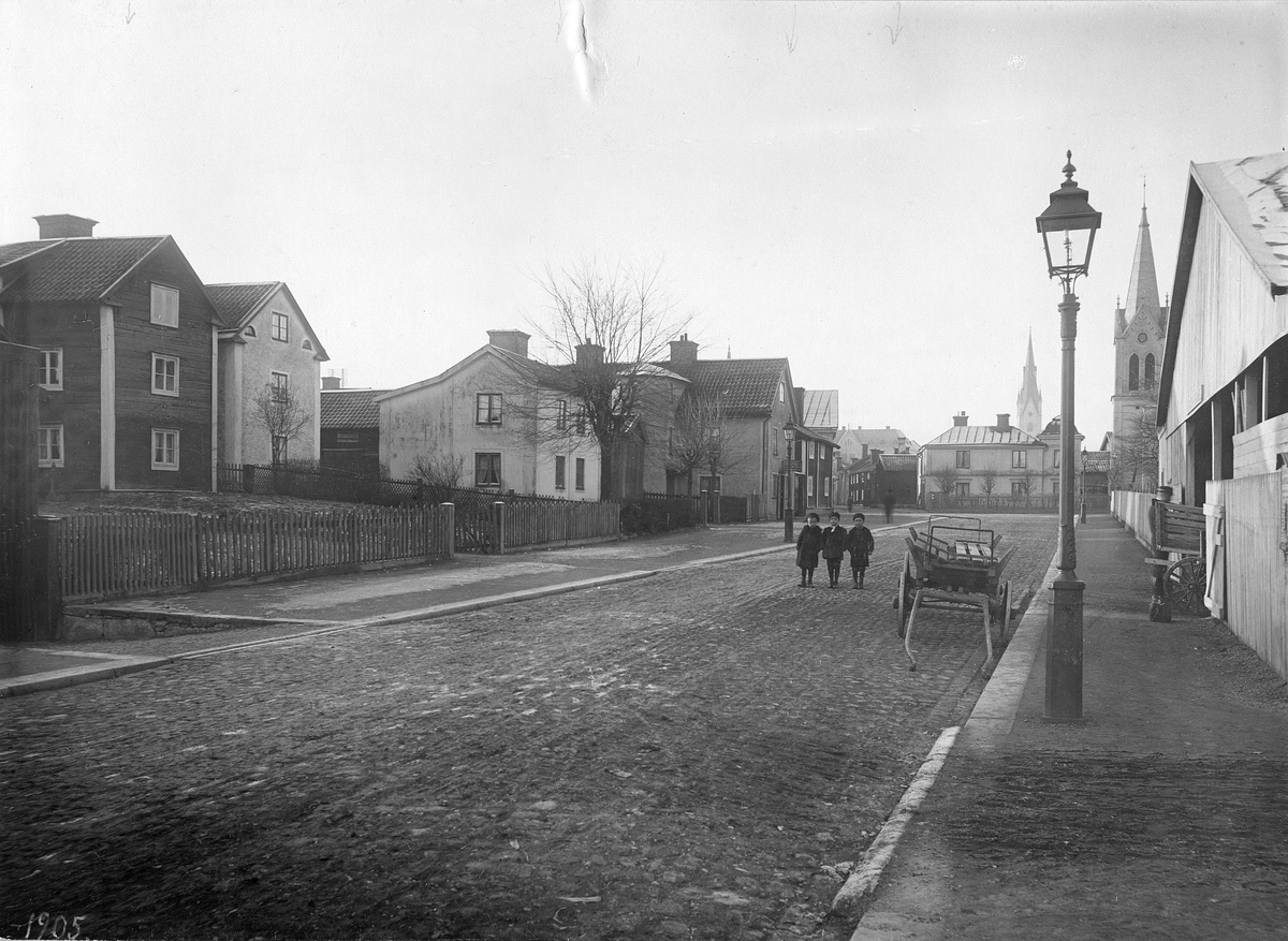 Ågatan västerut sedd från Hamngatan. Till höger skymtar Emanuelskyrkan. I fonden Linköpings domkyrka.