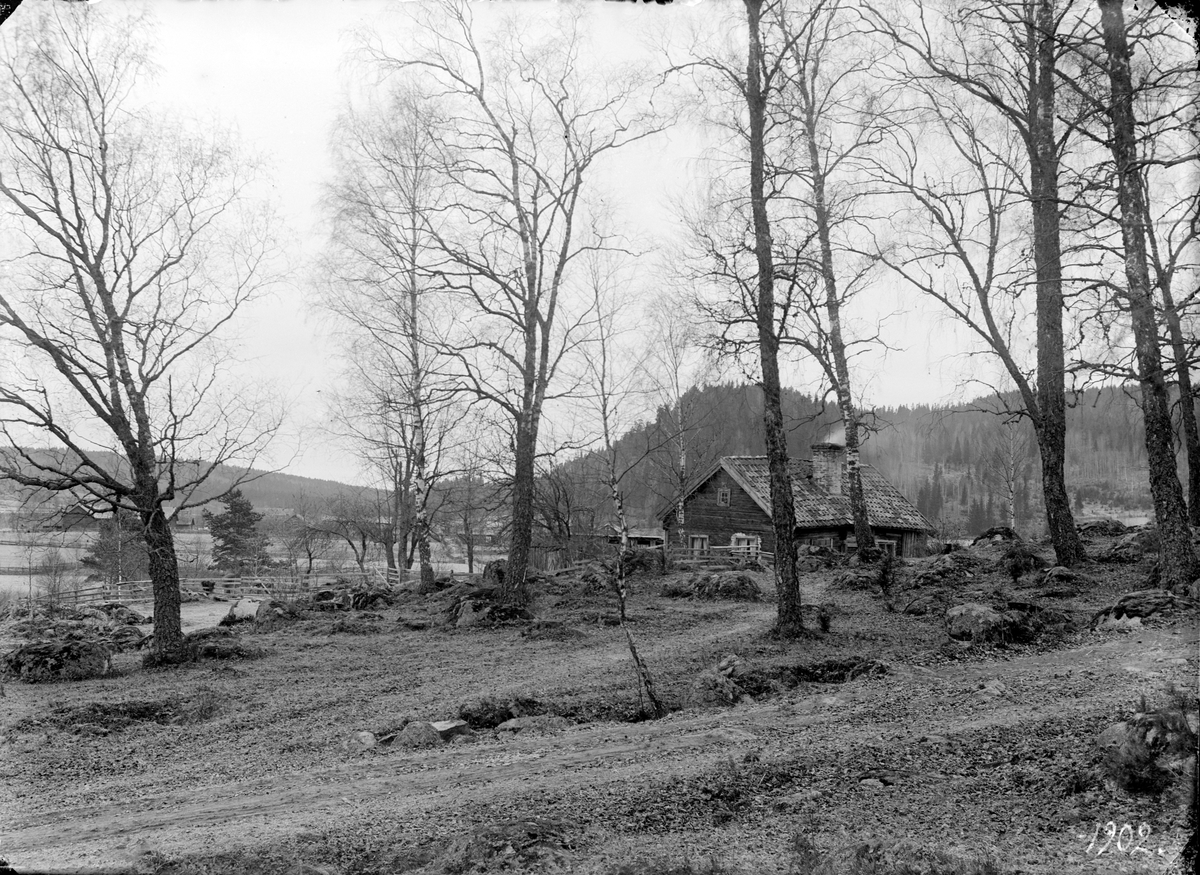 Gustavsholm under Mjellerum söder om Kisa. Vid tiden för bilden beboddes stugan av makarna Karl Johan och Anna Lovisa Andersson.
