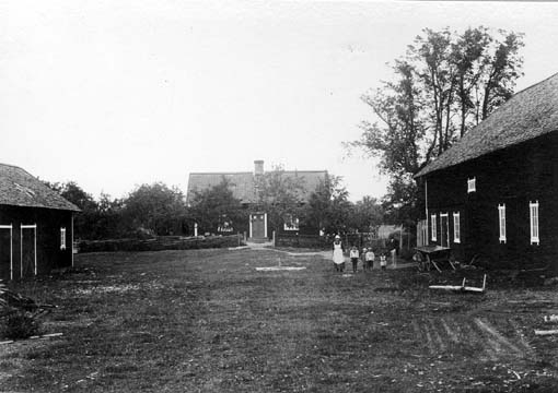 Lilla Visätter under Valla gård. På bilden arrendator Joel Olaison med fru och fyra barn.