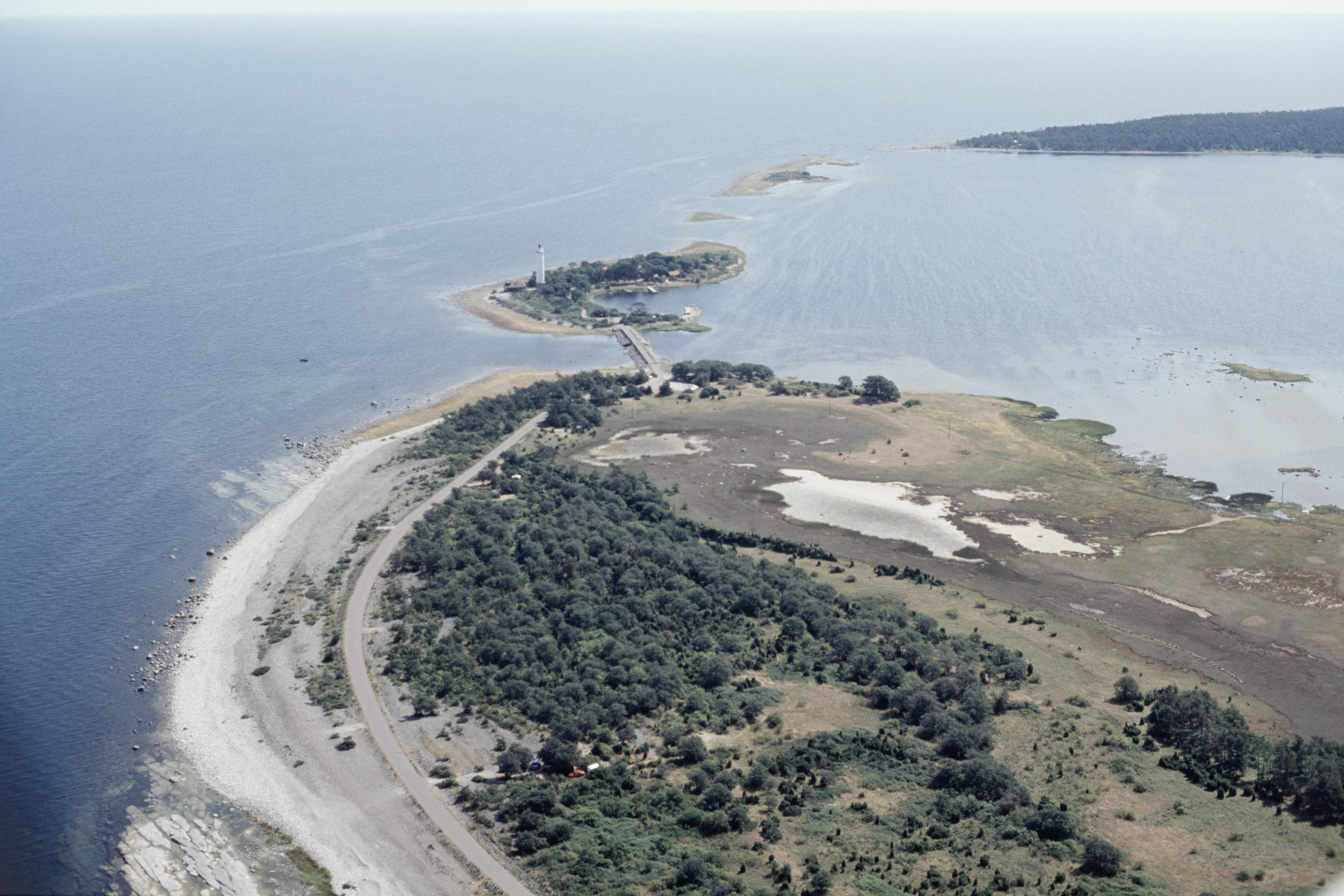 Gräsgrundet vid bildens mitt. I bildens övre del Stora Grundet med fyrplats Långe Erik. Bilden är tagen mot (väderstreck): NO