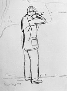 Frimärksförlaga - skisser - till frimärket Frivilliga Skytteväsendets 100-årsjubileum 1960, av konstnär Sven Ljungberg. (I Postmusei samlingar).