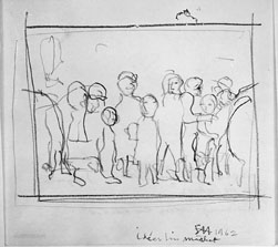 Frimärksförlaga till frimärket Världskampanjen mot hunger, utgivet 21/3 1963. Med anledning av FN-kampanjen mot hungern. Förslagsskisser utförda av Staffan Hallström (1914 - ). Förslagsskiss 1) Blyerts.