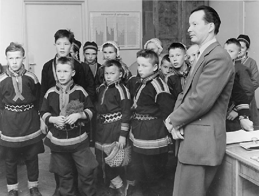 Skolbarnen med sin lärare Nils-Erik Spiik samlade i