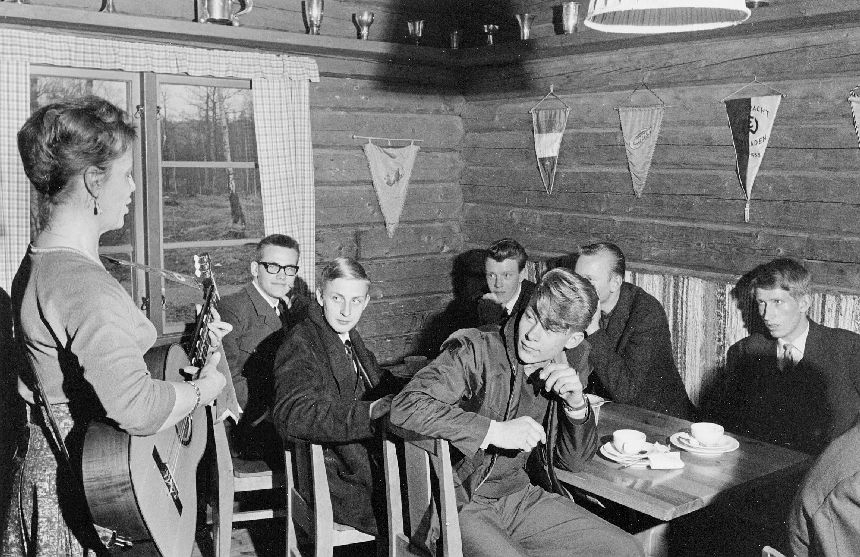 Fru Margit Ander, från Postfolket, underhåller med sång och