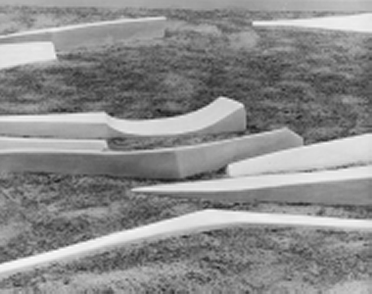 Detalj av väggreliefen. De vita formerna är utförda i stucco-lustro och ytan mellan formerna målad al secco, d.v.s. färgen målad på den torra bruksytan.