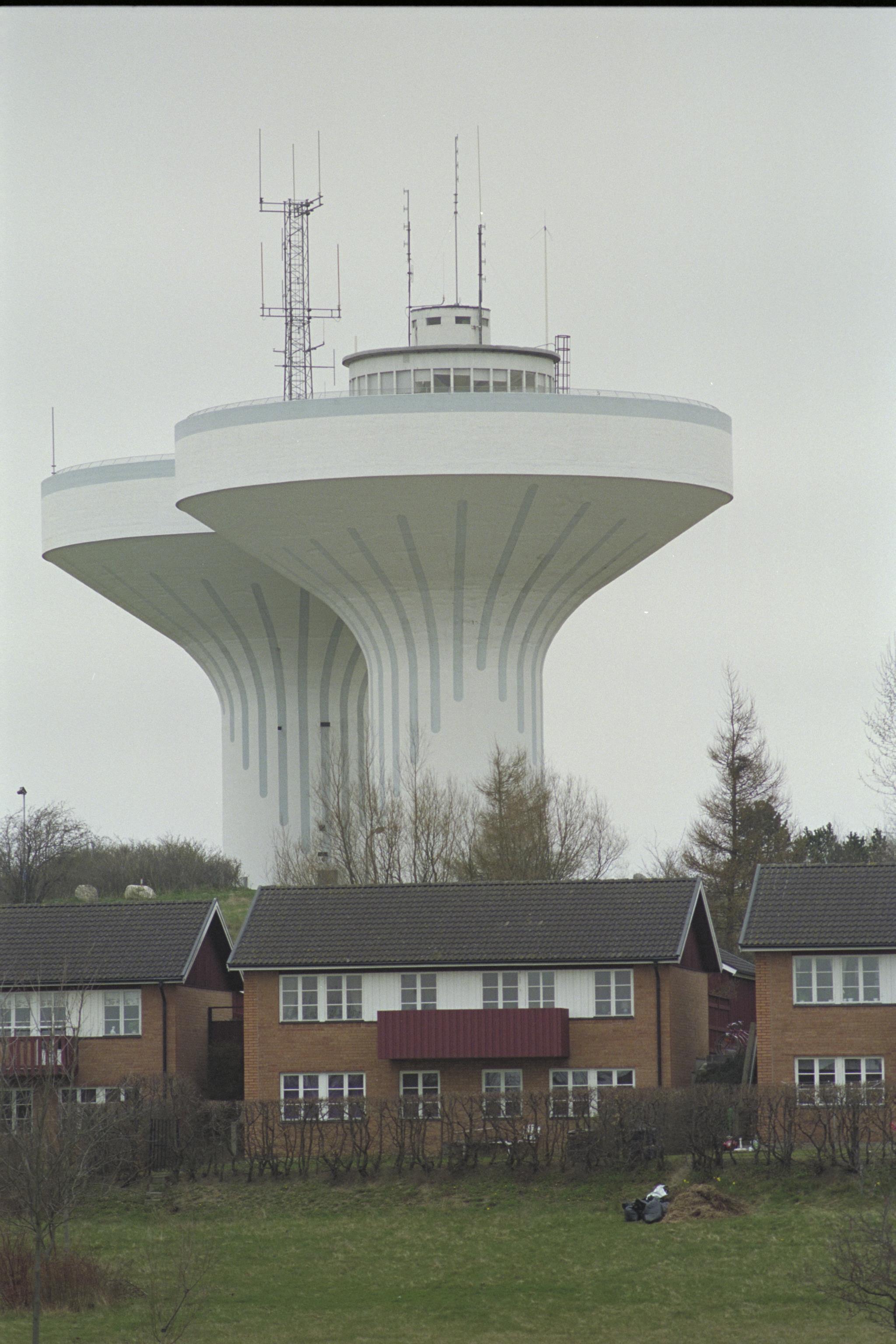 Bellevue, enfamiljshus med vattentorn i bakgrunden.