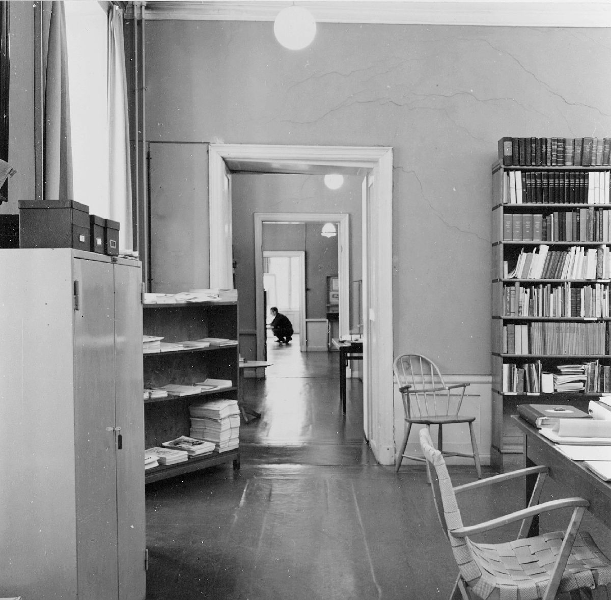 Arkivrum ("gröna rummet")på 2 tr. (åt Yxsmedsgränd). Rum nr 9-7 i
