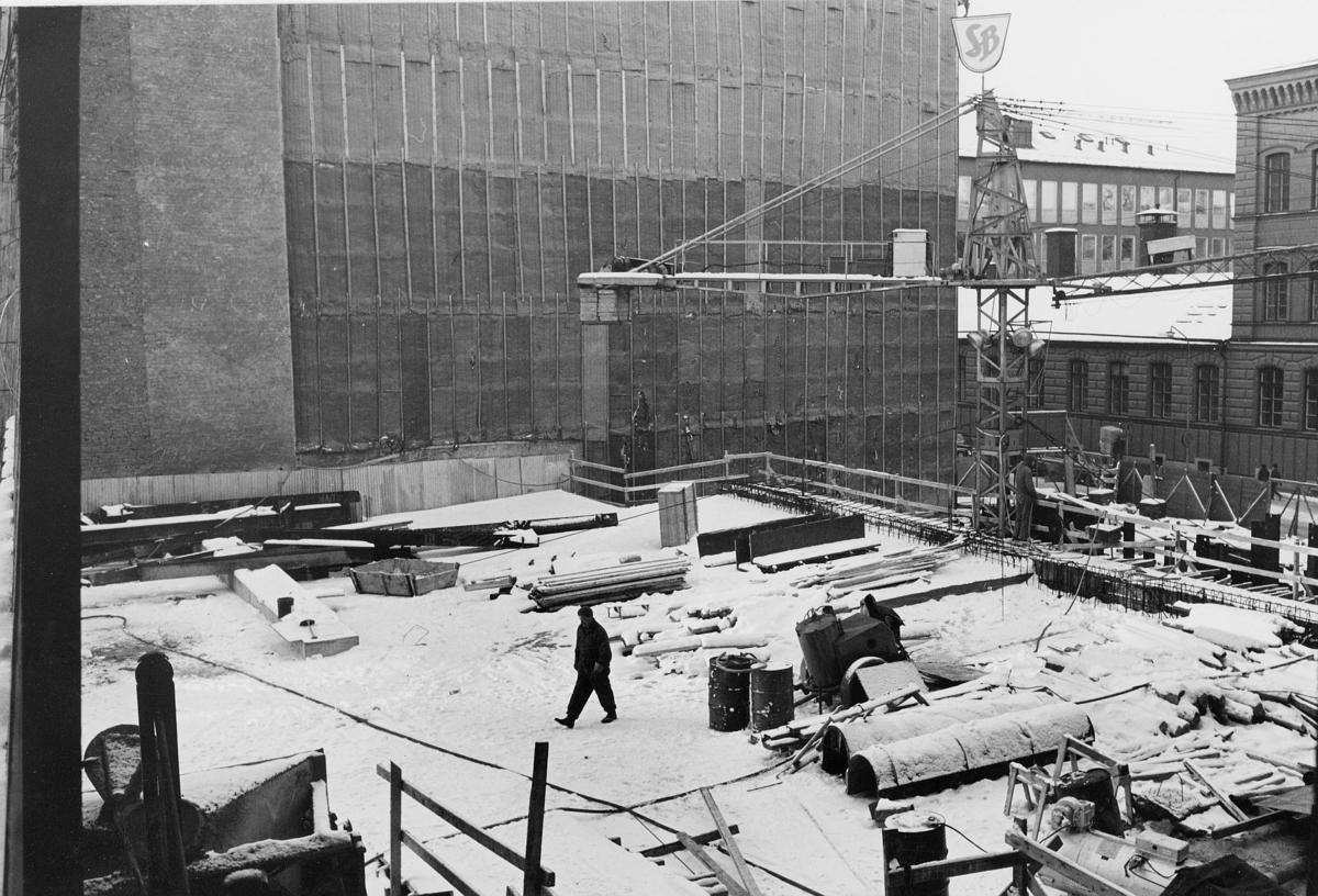 Fastighetens gård sedd från Postbankshuset. I fonden t.h. Tekniska