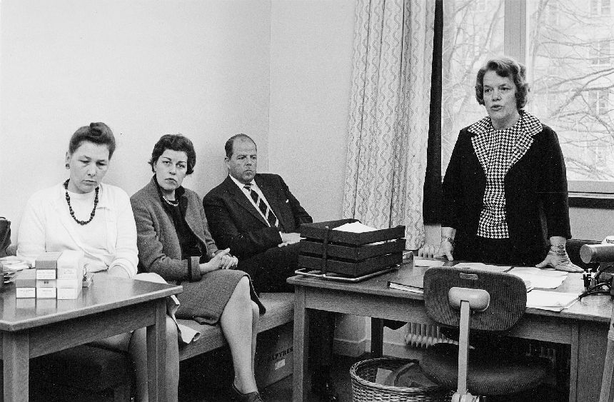 I samlingslokalen på postkontoret Stockholm 12. Gun Adolfsson