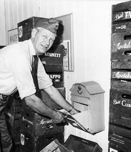 Lantbrevbärare Erik Johansson tömmer brevlådan vid Singö handel.
