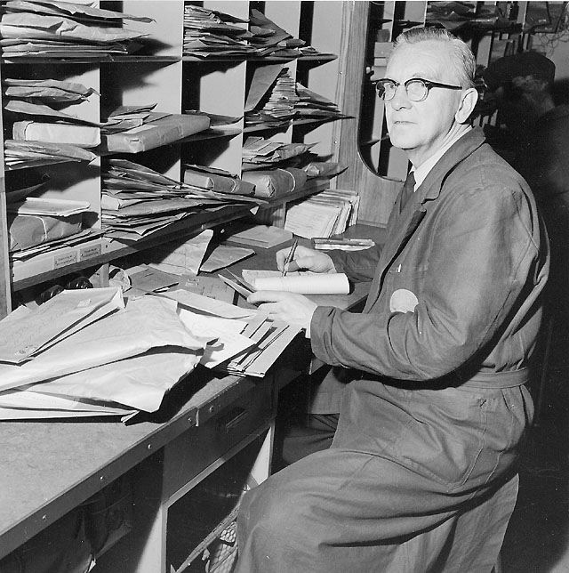 Kupémästare K G Nilsson började i järnvägsposten 1915.