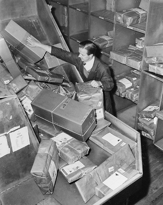 Från grovsorteringen rutschar paketen till finsorteringen, där de