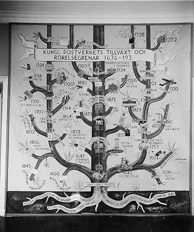 Kåkbrinken). Postverkets stamträd, målning av Jerk Werkmäster 1930.