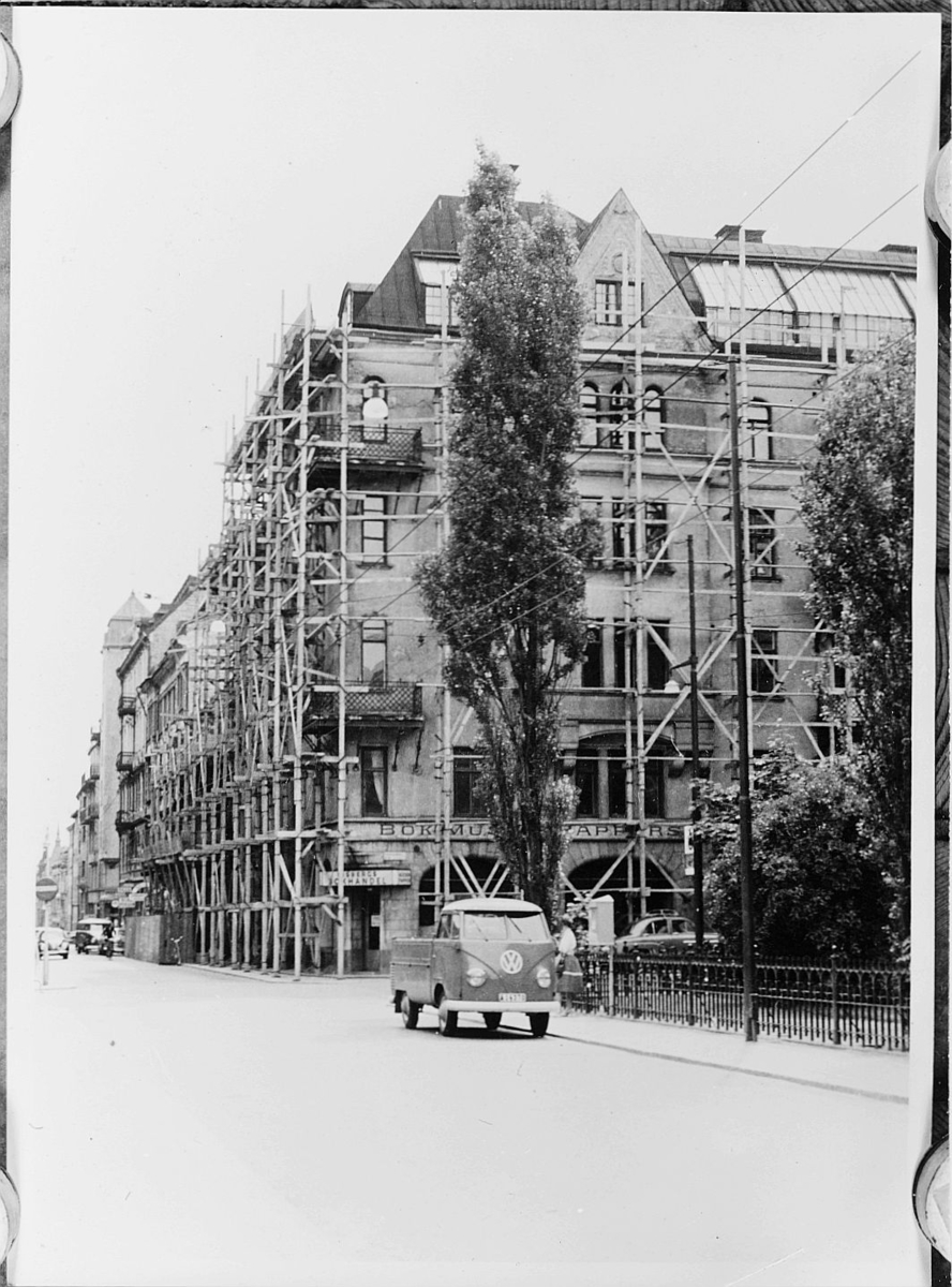 Titel: Hörnhuset Drottninggatan-Rådmansgatan före rivningen. Foto 1959.