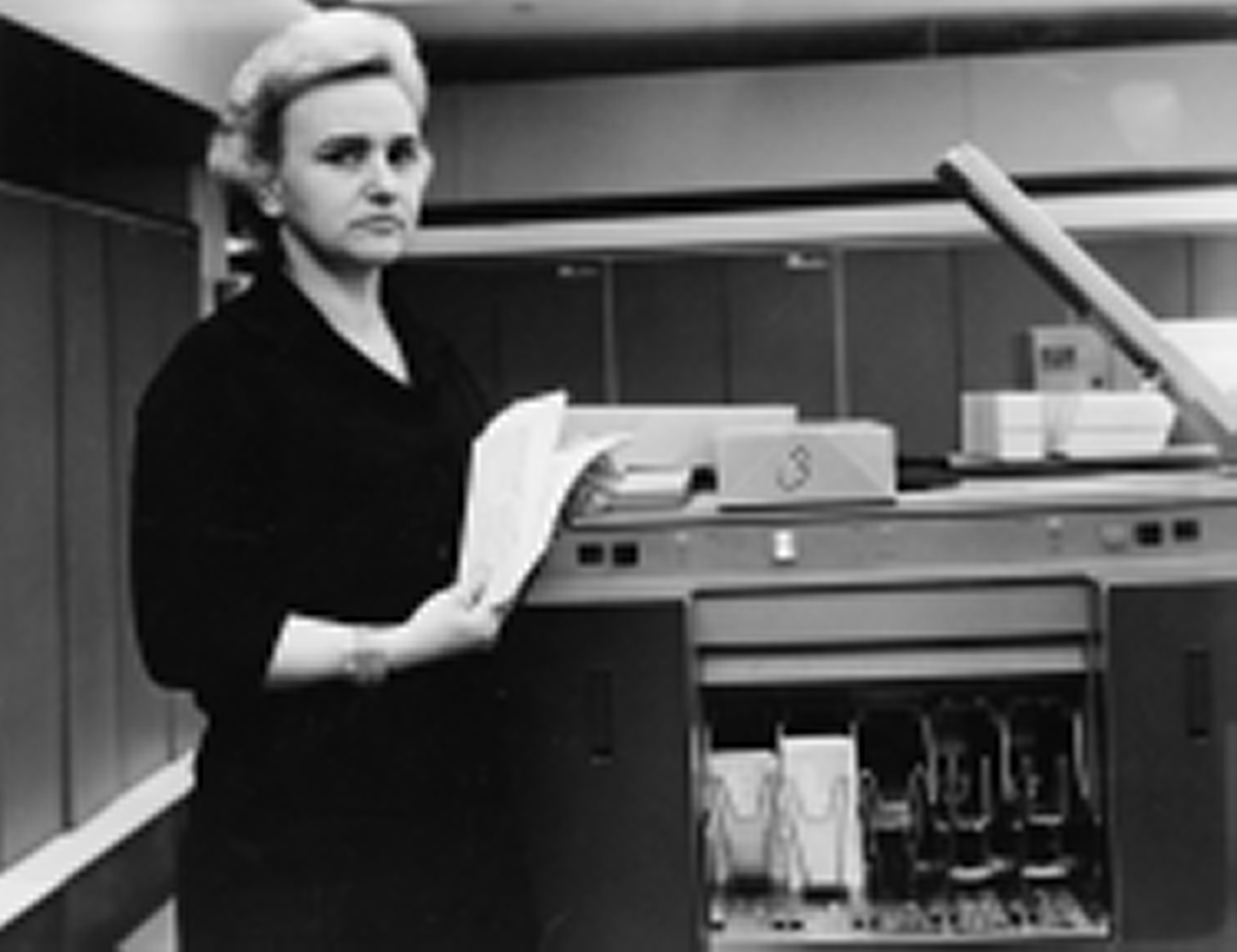 Fru Margit Lundberg sköter bl a en datamaskin som används för att få fram räntebesked till motbokskonton och som stansar 500 hålkort på två minuter.