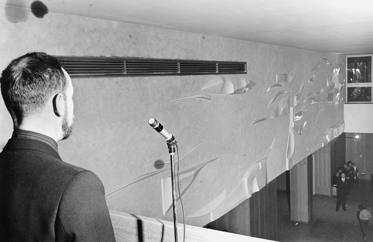 Konstnären Jan Brauner berättar om sitt konstverk vid invigningen.