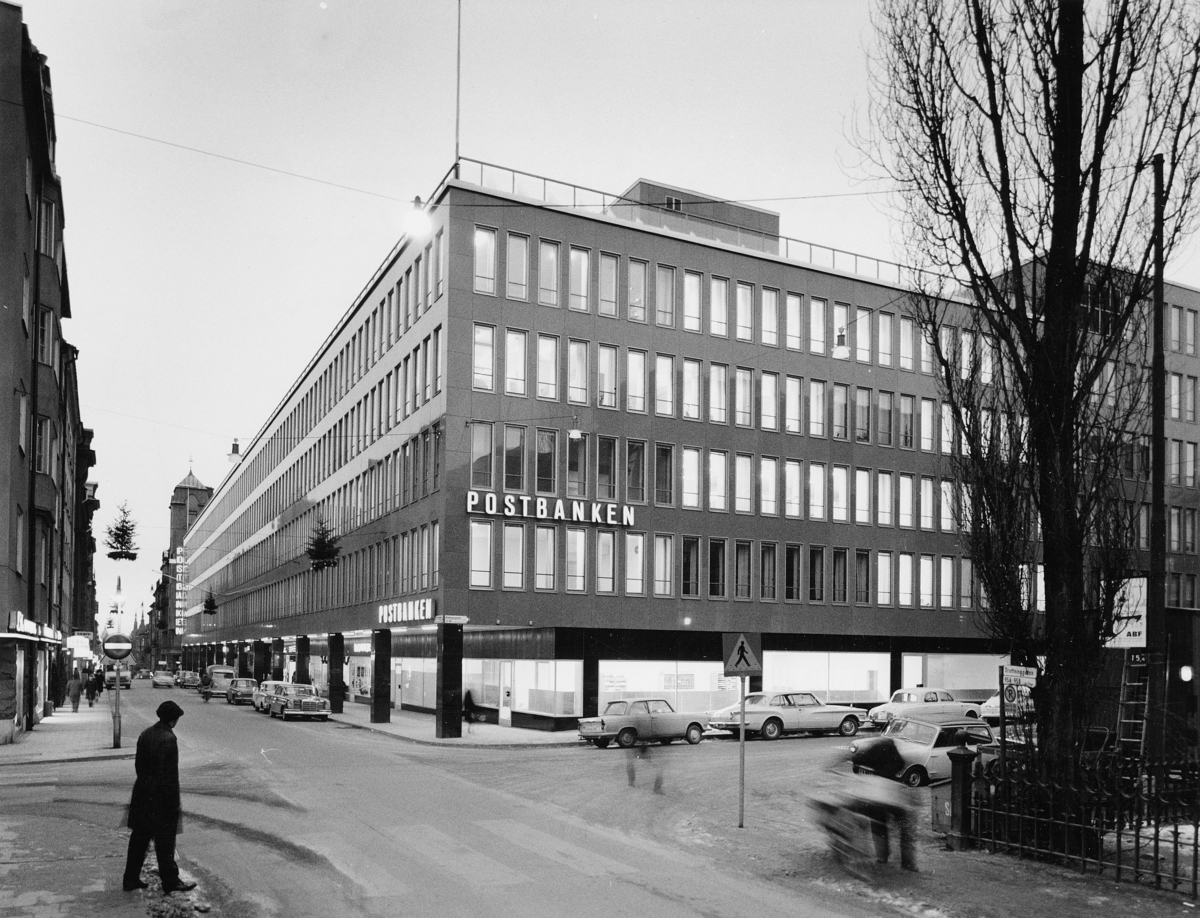 Postbankshuset sett från hörnet Drottninggatan - Rådmansgatan.