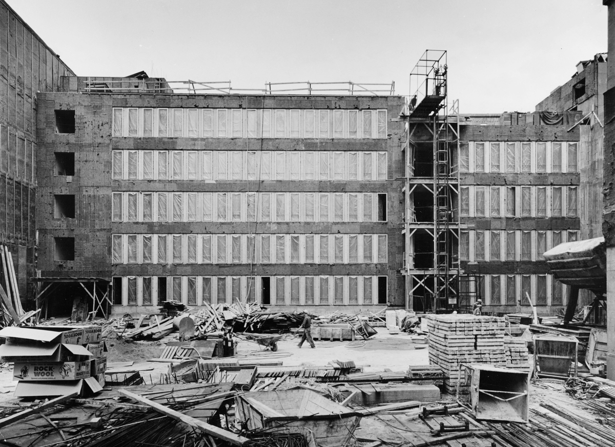 Huset Rådmansgatan 65, från gårdssidan. I våningarna 3-5 trappor skall postverkets läkarcentral inrymmas.