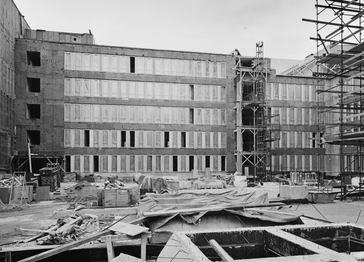 Huset Rådmansgatan 65, sedd från gårdssidan. Postverkets läkarcentral skall inrymmas i våningarna på 3-5 trappor.