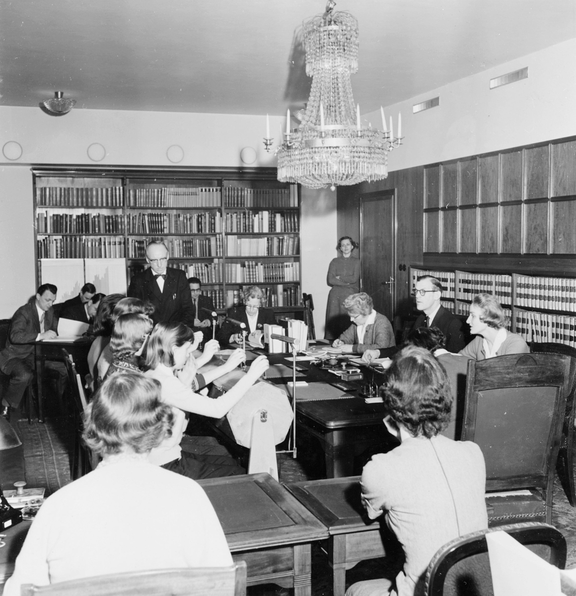 Till höger sitter Notarius Publicus. I fonden (t.h. om den stående)