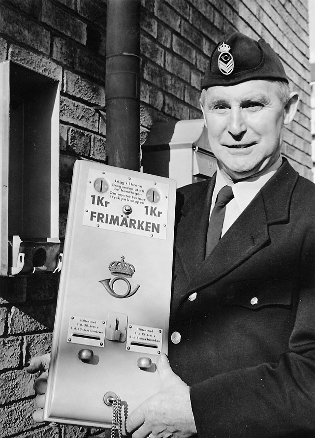 Tillsyningsmannen lyfter automaten ur höljet, tömmer och laddar på