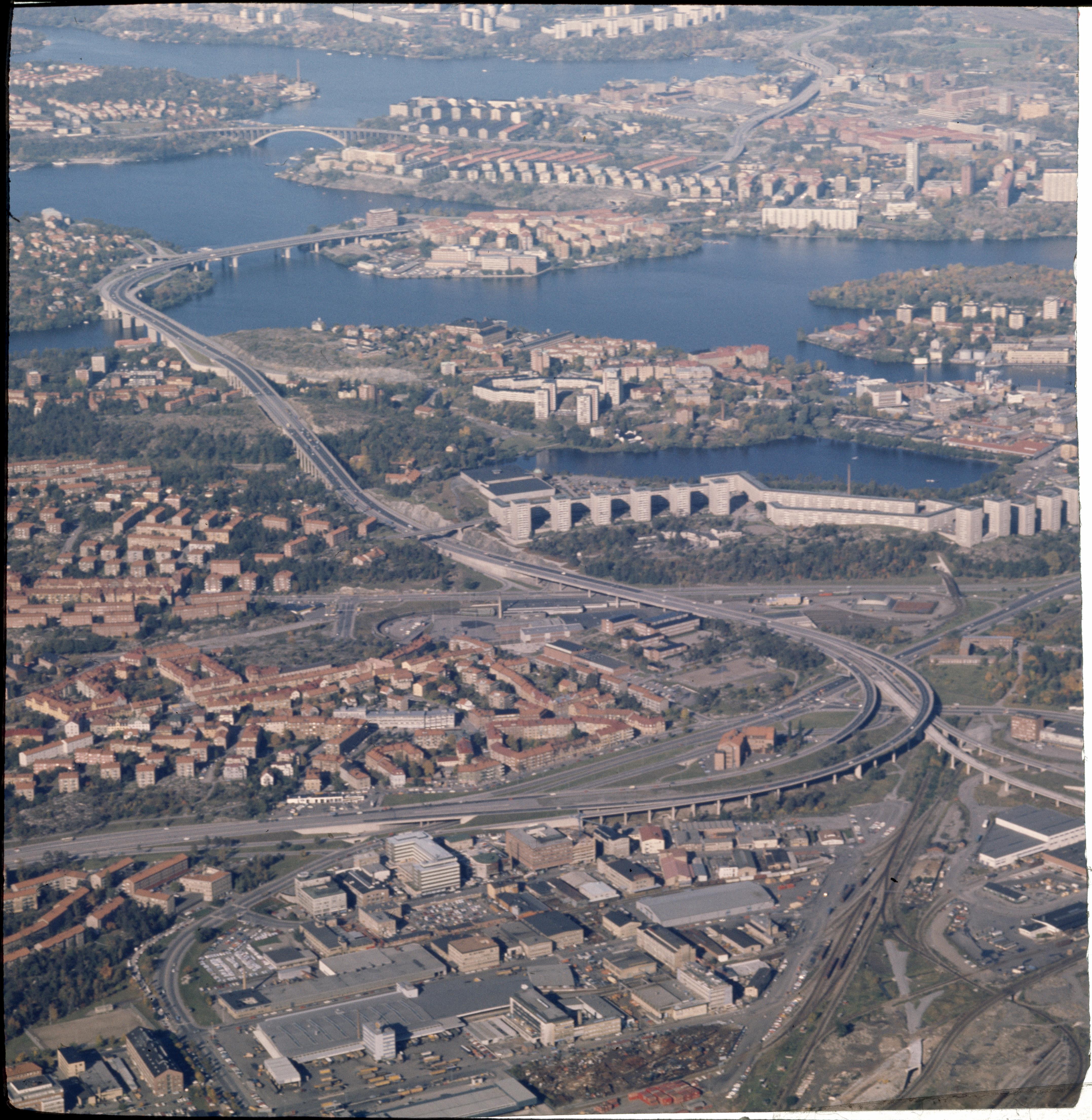 Midsommarkransen, Aspudden, Liljeholmen och Gröndal. I bakgrunden City.