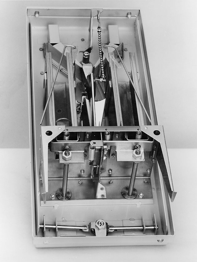 Framstycket borttaget. Mekanismen sedd underifrån.