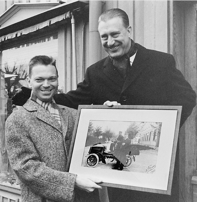 postverkets gåva till staden - ett foto av den första postbilen i